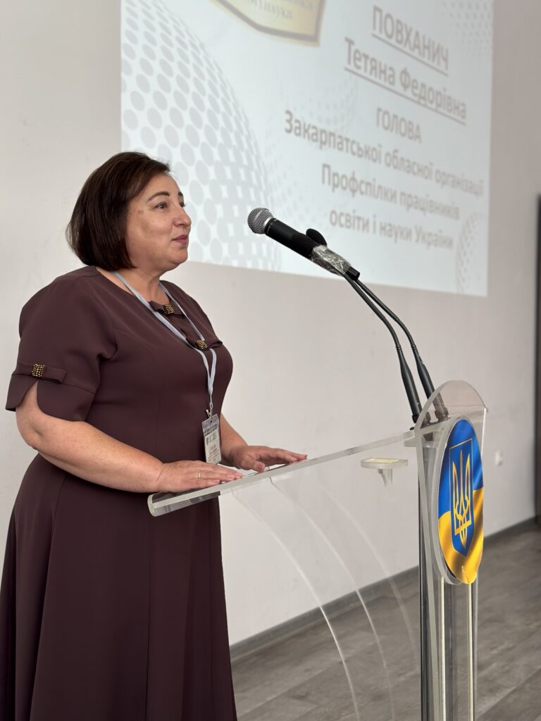 Тетяна Повханич, голова Закарпатської обласної організації Профспілки працівників освіти і науки України, у своєму виступі дала високу оцінку роботи міській організації за звітній період. Наголосила, що Мукачівська міська організація Профспілки – це сучасна Профспілка, мобільний консолідуючий орган сьогодні, де панує атмосфера довіри, підтримки, єдності та взаємодопомоги. Тетяна Федорівна вручила знакові нагороди: