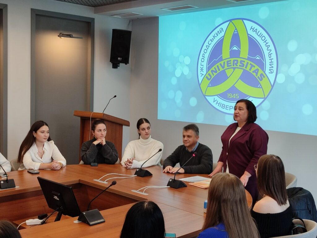 Так, під час розширеного засідання профбюро первинної профорганізації студентів УжНУ, у залі Вченої ради Ужгородського національного університету до студактиву з вітальним словом звернулися проректор з науково-педагогічної роботи ДВНЗ «УжНУ» – Ігор Король та голова Закарпатської обласної організації Профспілки – Тетяна Повханич.