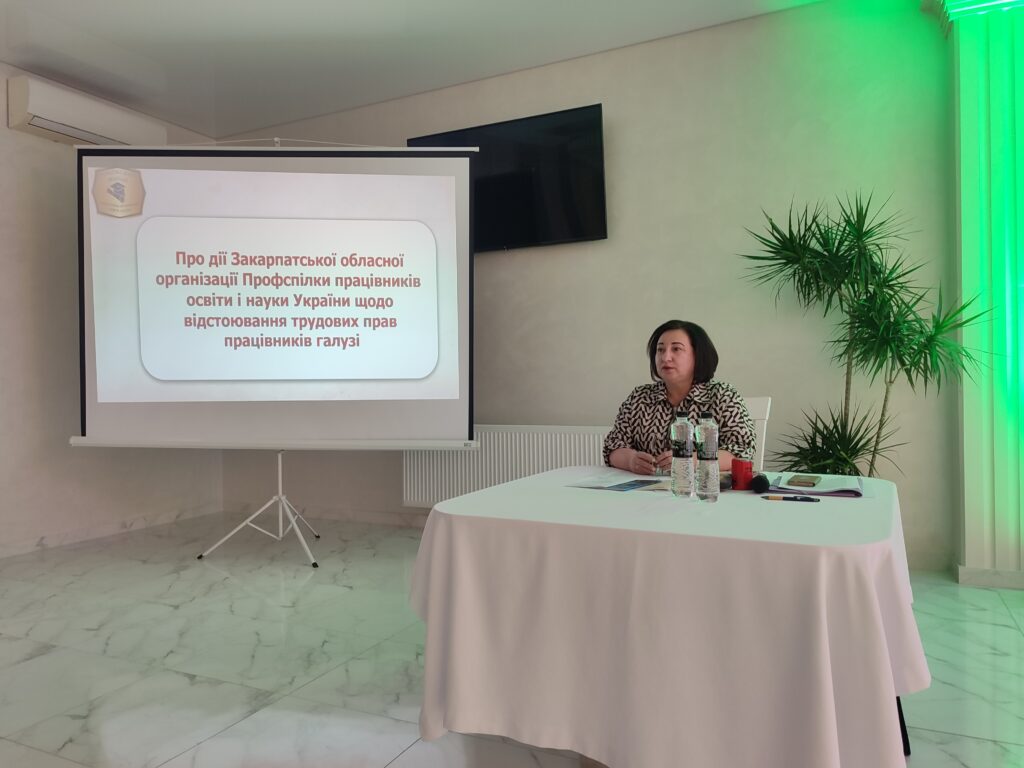 Голова обласної організації Профспілки Тетяна Повханич детально розкрила питання про дії Закарпатської обласної організації Профспілки працівників освіти і науки України щодо відстоювання трудових прав працівників галузі.